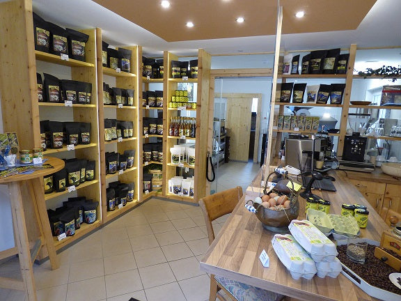 In unserem Hofladen findest du neben unseren Bio Kaffees weitere Hofprodukte, Fleisch- und Wurstwaren und Gewürze.